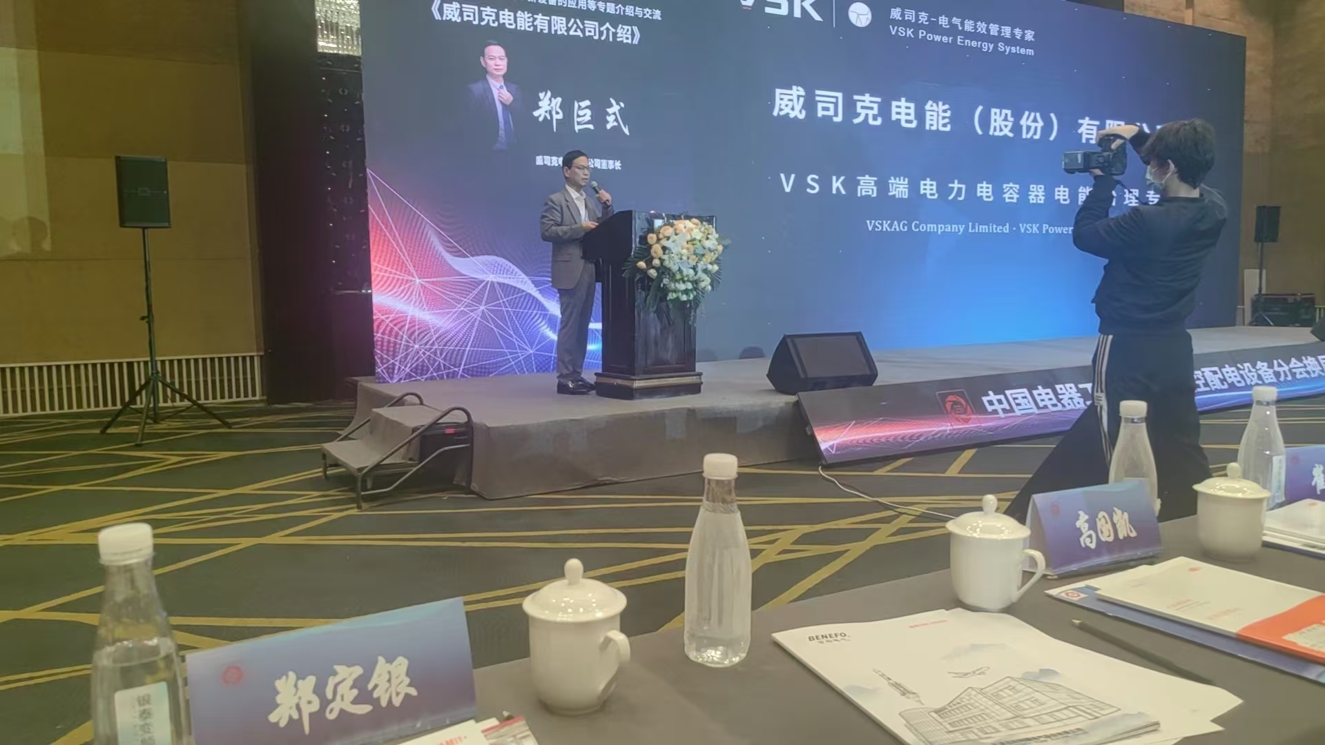 VSK威司克电能荣幸作为此次大会的协办单位,积极参与支持了此次大会的胜利召开。在会议现场,威司克电能创始人郑巨式先生发表了重要讲话,并发布了VSK高端电力电容器电能质量治理系列产品,重点介绍了公司的拳头产品—威司克高端电力电容器系列产品。