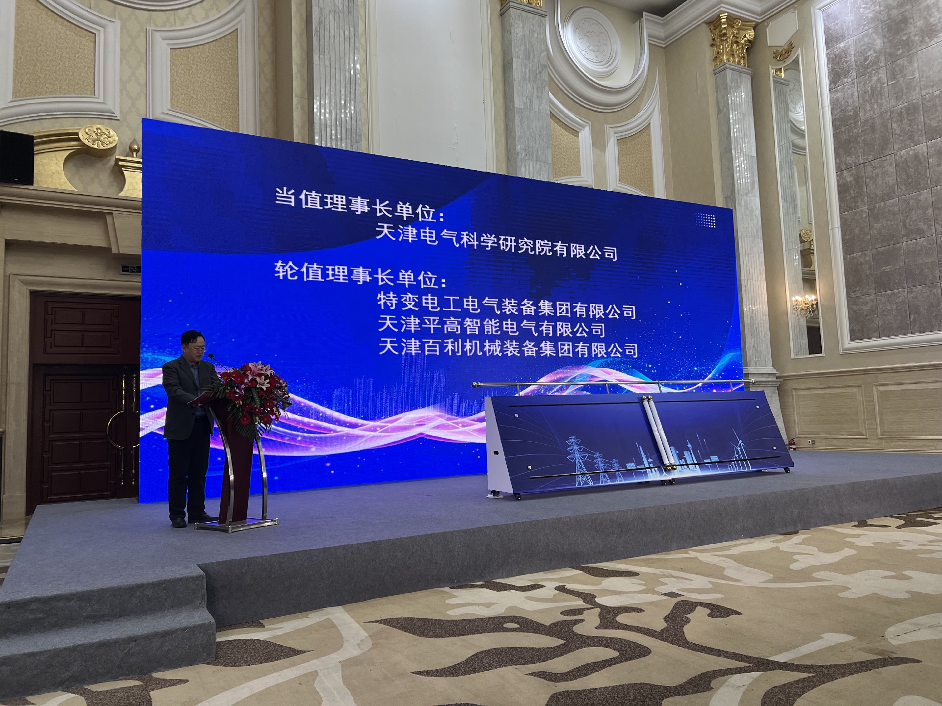 天津市电力装备产业联盟阵容强大,由天津电气科学研究院有限公司、特变电工电气装备集团有限公司、天津平高智能电气有限公司和天津百利机械装备集团有限公司这4家行业领军单位发起作为轮值理事长单位,天津港电力公司、威司克电能有限公司、三一重能股份有限公司为产业联盟副理事长单位,天津电气科学研究院有限公司为秘书长单位、国网上海能源互联网研究院有限公司为专家委员会单位,联合我市电力装备产业链上下游110余家重点企业共同发起成立。众多企业携手合作,汇聚各方资源和智慧,为联盟的发展奠定了坚实的基础。成立大会上市工信局党组书记尹继辉局长、东丽区委副书记陈晖等领导出席会议并讲话、天津市电气科学研究院有限公司周锋董事长作为当值理事长宣读倡议书,国网电科院韩篩根主任对新型电力系统的构建进行精彩的解读。
