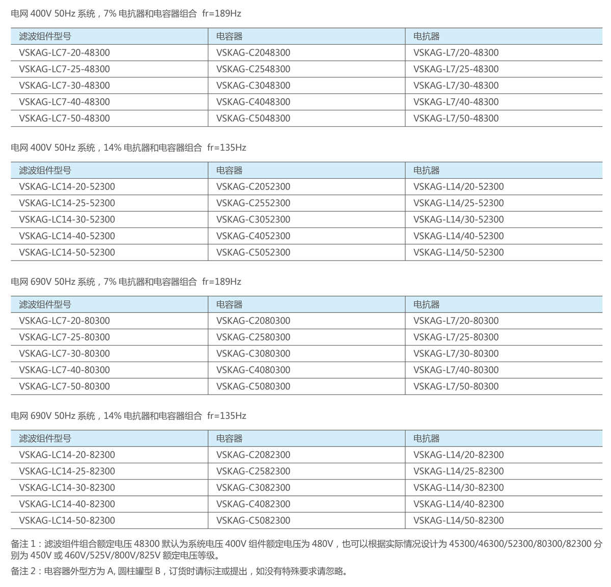 VSKAG-LC型电容器调谐滤波器组 快速选型方案表